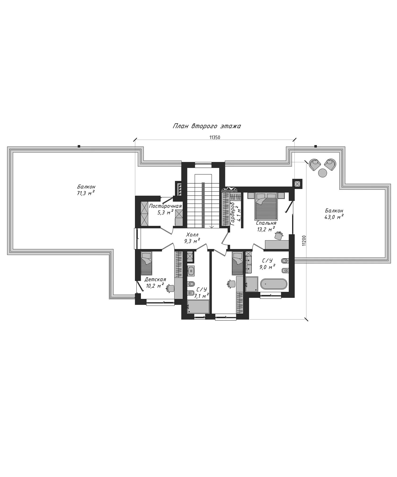 Архитектурно-планировочное решение: - На первом этаже располагаются гараж, спальня, сауна, кухня гостиная, терраса, гардероб и два санузла - На втором этаже располагаются два балкона, холл, спальня, две детские и гардероб