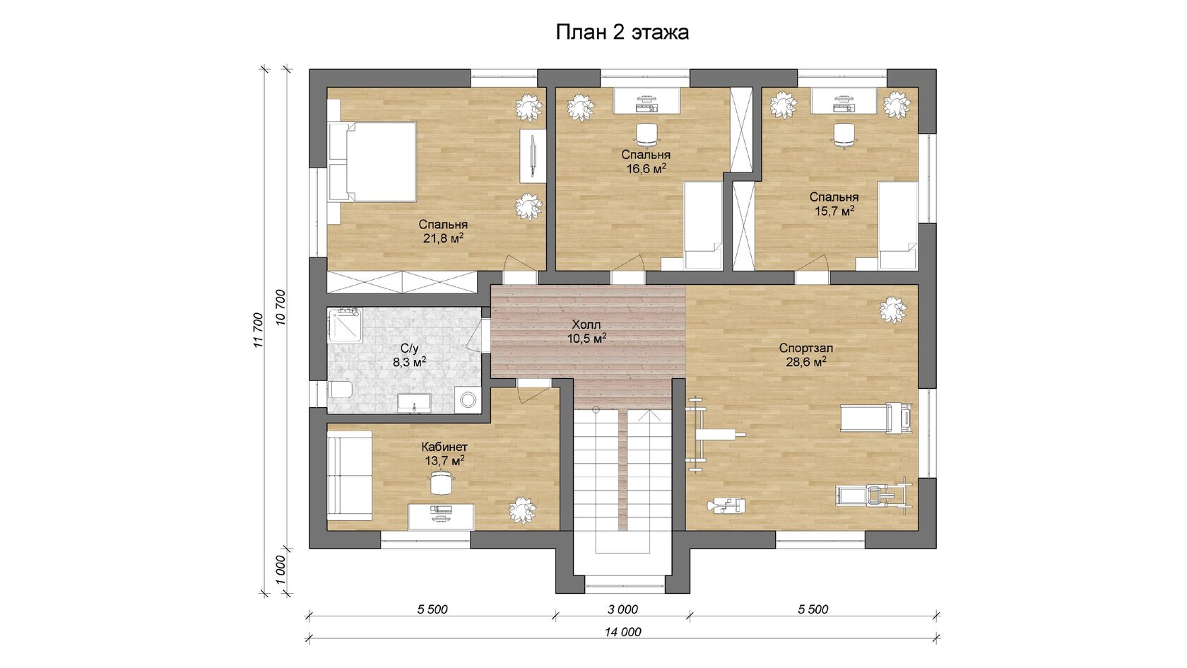 Проект двухэтажного дома в современном английском стиле общей площадью 347м2 в коттеджном посёлке «Лунево-Новое» большой террасы и гостиной на первом этаже, а также спортзалом площадью 28,6м2 на втором этаже