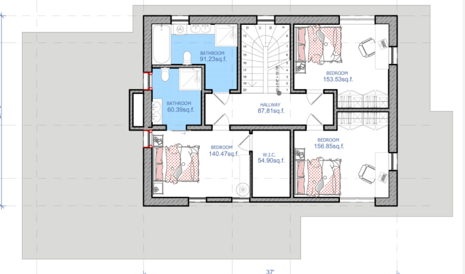 Архитектурно-планировочное решение: - На первом этаже располагаются гостиная, столовая, кухня, санузел, кабинет, патио - На втором этаже располагаются три спальни, два санузла, балкон и гардероб